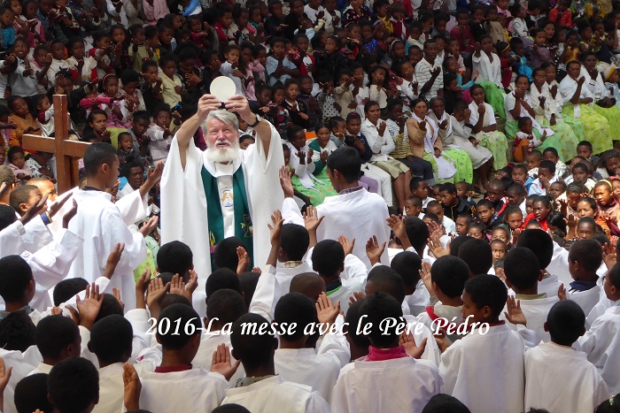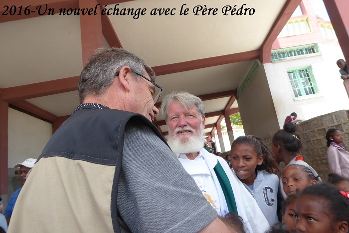 En 2015, le Père Pédro nous reçoit dans son bureau durant 45mn. Il s’agit d’un échange sur un éventuel partenariat avec notre Association. Il nous fait part de toutes ses actions, des difficultés diverses rencontrées, de ses recherches de financement et il nous félicite pour nos actions envers le peuple Malgache.